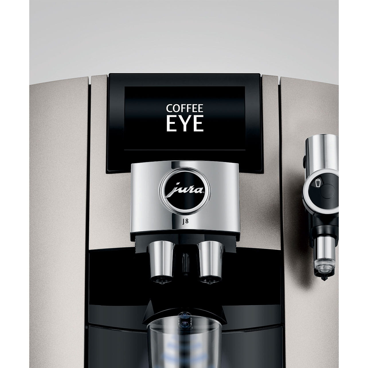 Niezależnie od tego, czy to klasyczna kawa z centralnej wylewki, czy specjał wzbogacony mlekiem i pianką mleczną z wylewki cappuccino – Coffee Eye ułatwia przyrządzanie idealnego specjału. Inteligentny czujnik filiżanki automatycznie dostosowuje specjały dostępne do wyboru na wyświetlaczu do położenia filiżanki. Dla jeszcze łatwiejszej i bardziej intuicyjnej obsługi.