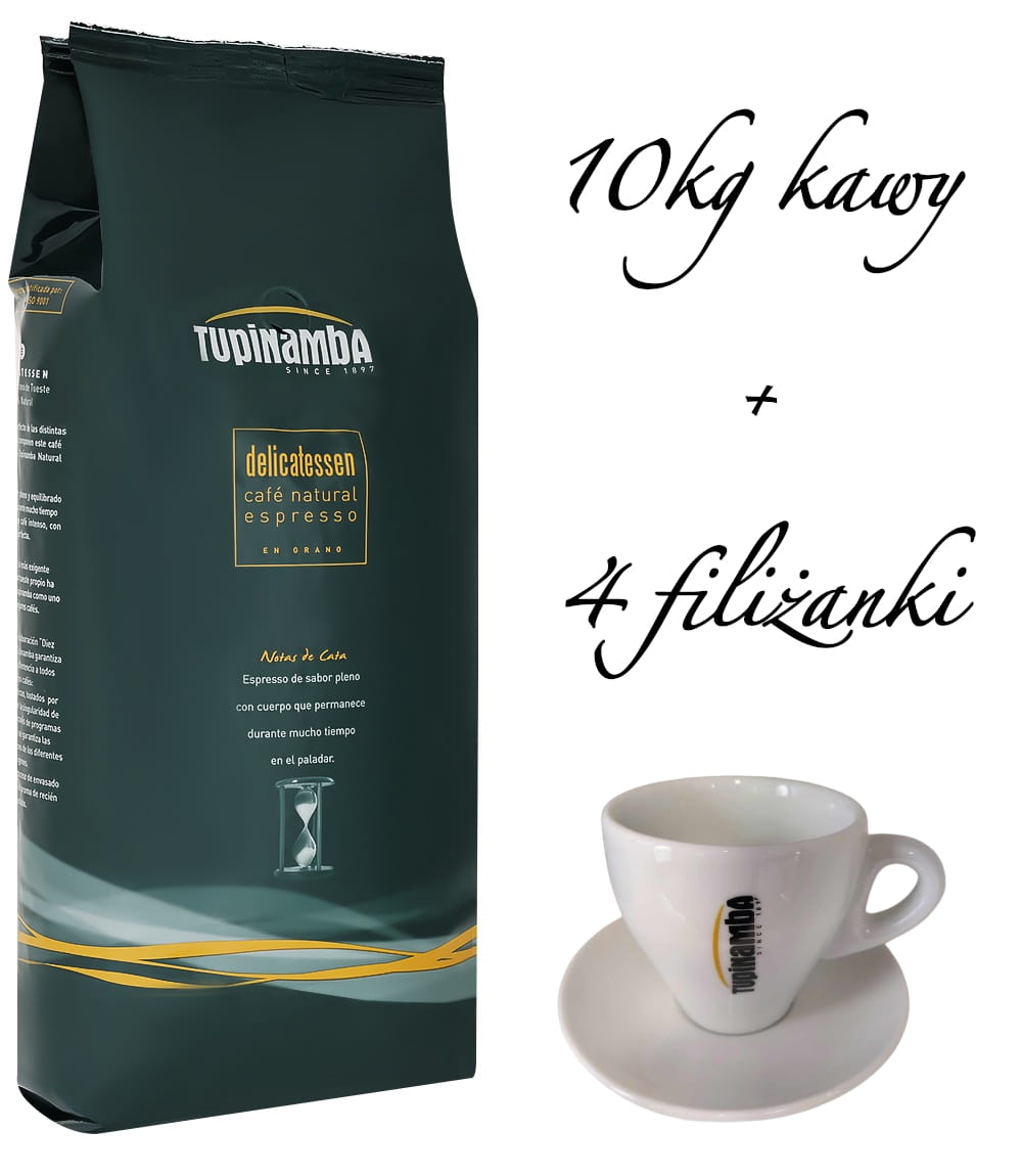 Zestaw 10kg kawy Tupinamba Dark Natural + 4 filiżanki cappuccino 200ml