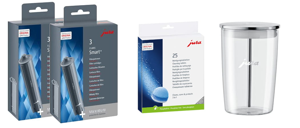 Zestaw Jura 6 filtrów Claris Smart + tabletki czyszczące 25szt. + pojemnik na mleko